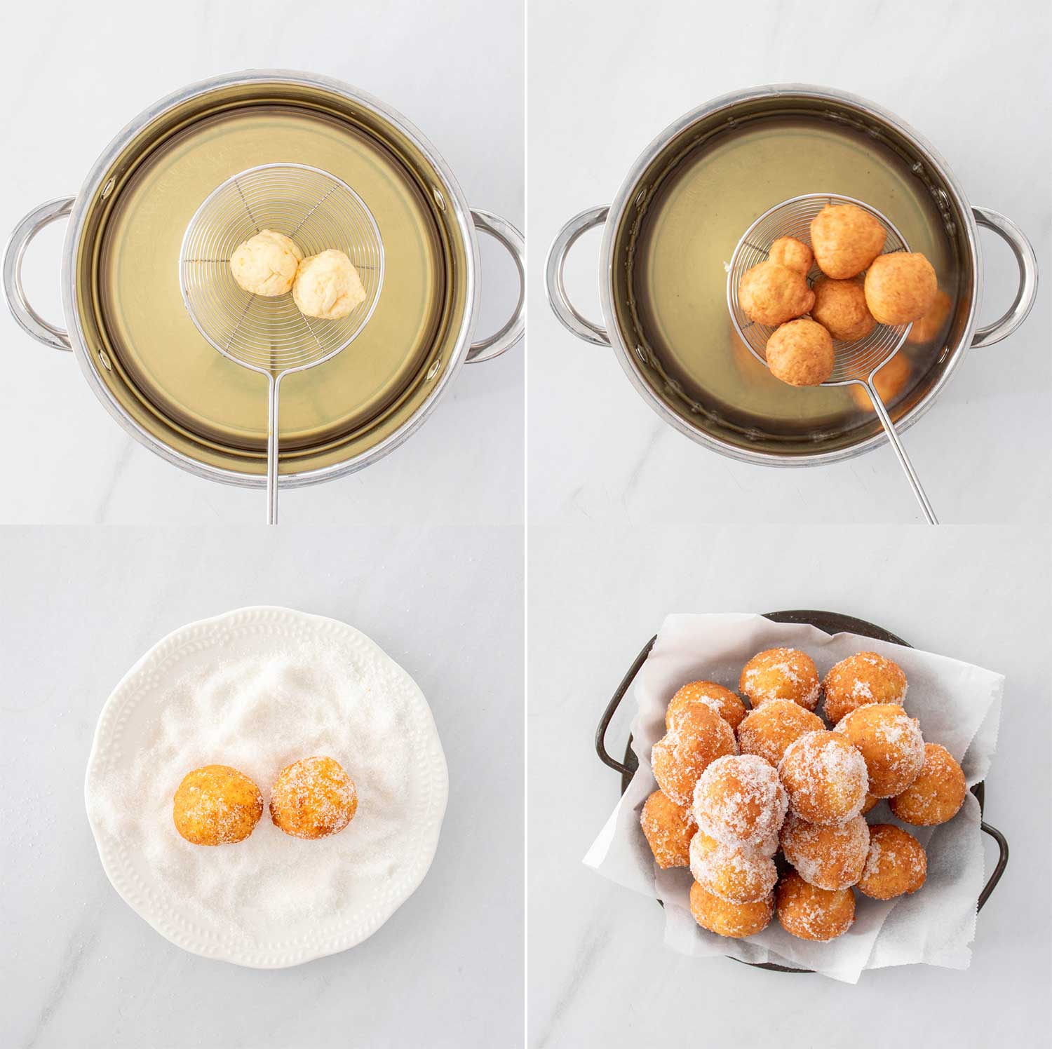 - Scoate-le pe șervețel și tăvălește-le prin zahăr cât sunt calde.