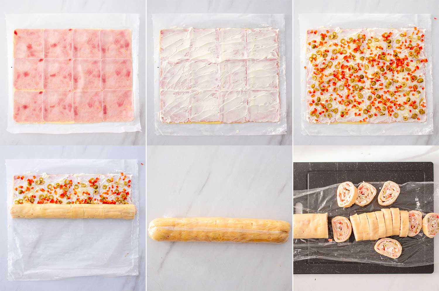- Taie legumele și șunca în bucăți mici și uniforme – pentru o ruladă compactă și feliată ușor.