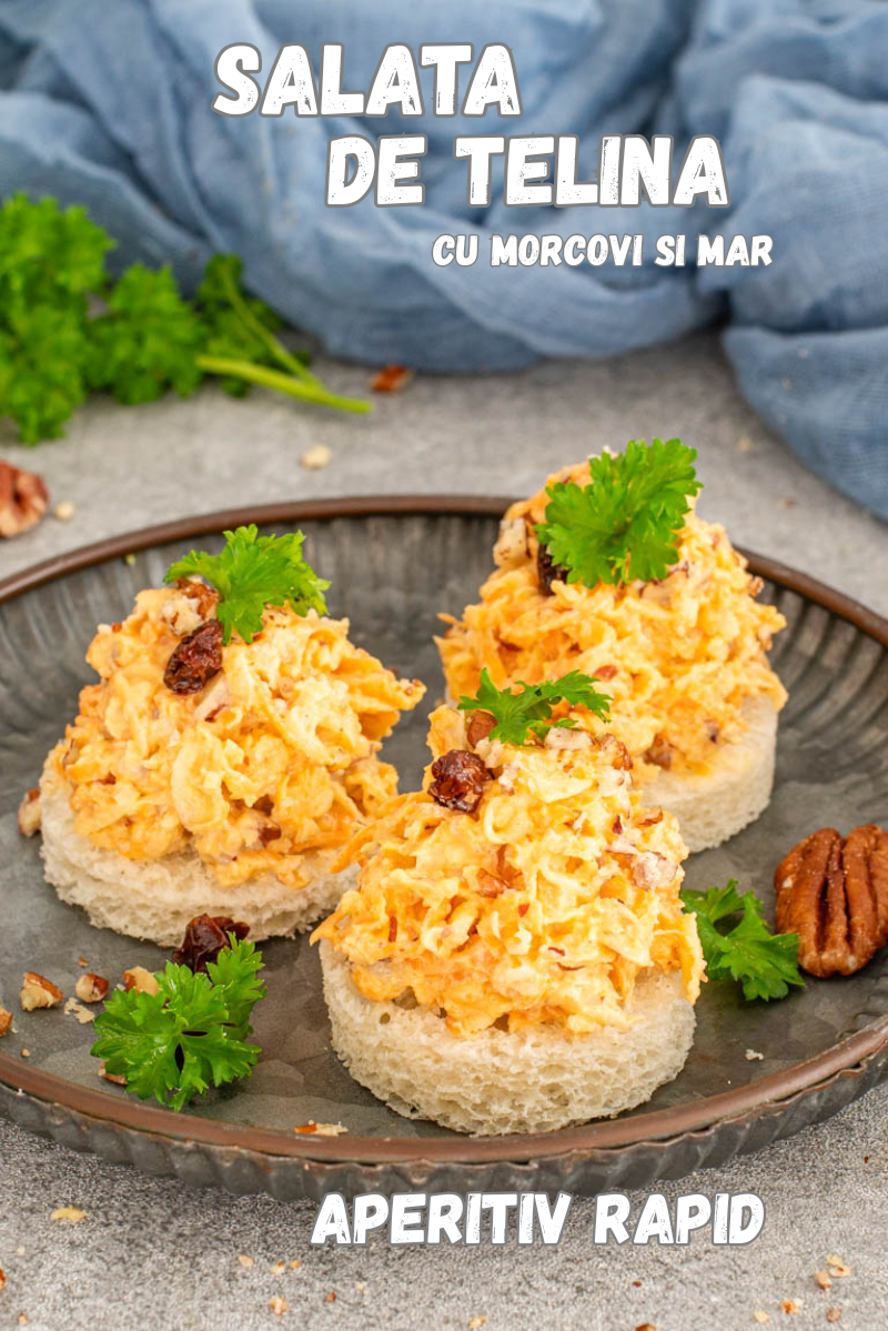 Salata de țelină este o rețetă clasică de aperitiv, ușor de pregătit și foarte gustoasă, potrivită mai ales pentru mesele festive, cum este Revelionul. Combinația de țelină, morcov și măr aduce prospețime și un gust ușor dulce-acrișor, iar maioneza și nuca măcinată îi dau consistență și o textură cremoasă. Este genul de salată care se face rapid și se mănâncă și mai repede, mai ales când e împărțită cu prietenii.